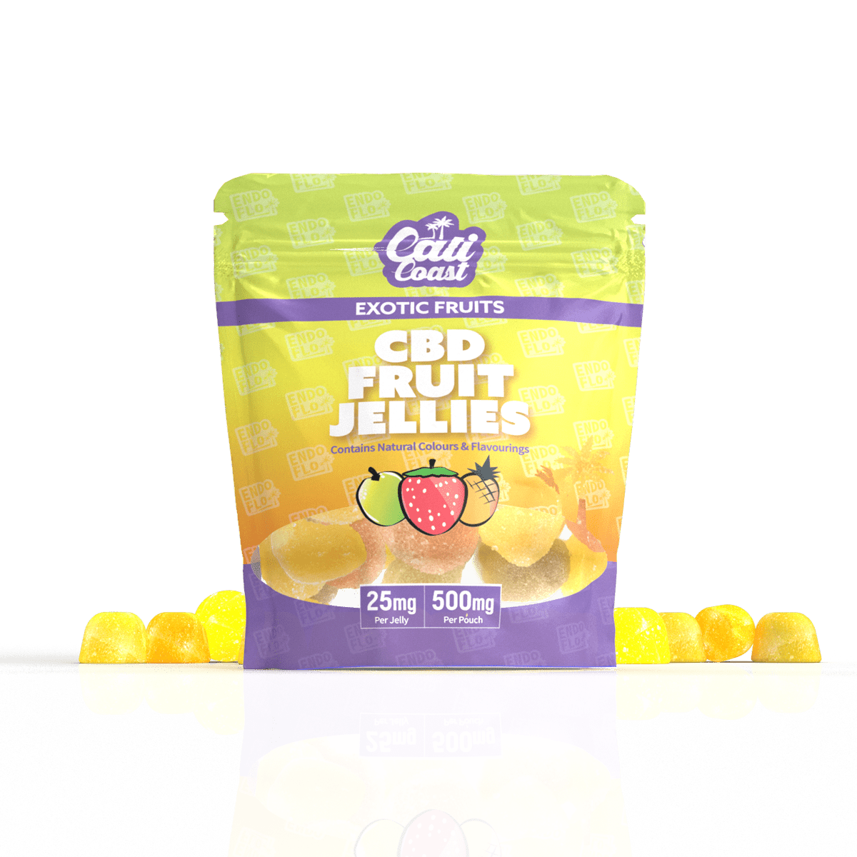 - 25mg – Sold in packs of 20, each individual pouch contains 20 x 25mg jellies with a total of 500mg cannabidiol.